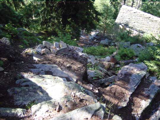 Lavori sul sentiero Věli - Usc, all'altezza della Capčle da Věli, eseguiti dalla classe Muratori Formazione empirica del Centro professionale di Biasca,